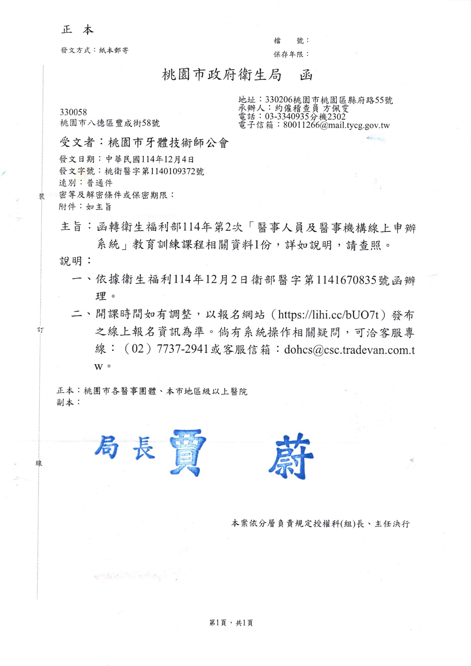 【桃園市政府衛生局轉知】-醫事人員及醫事機構線上申辦系統,教育訓練課程