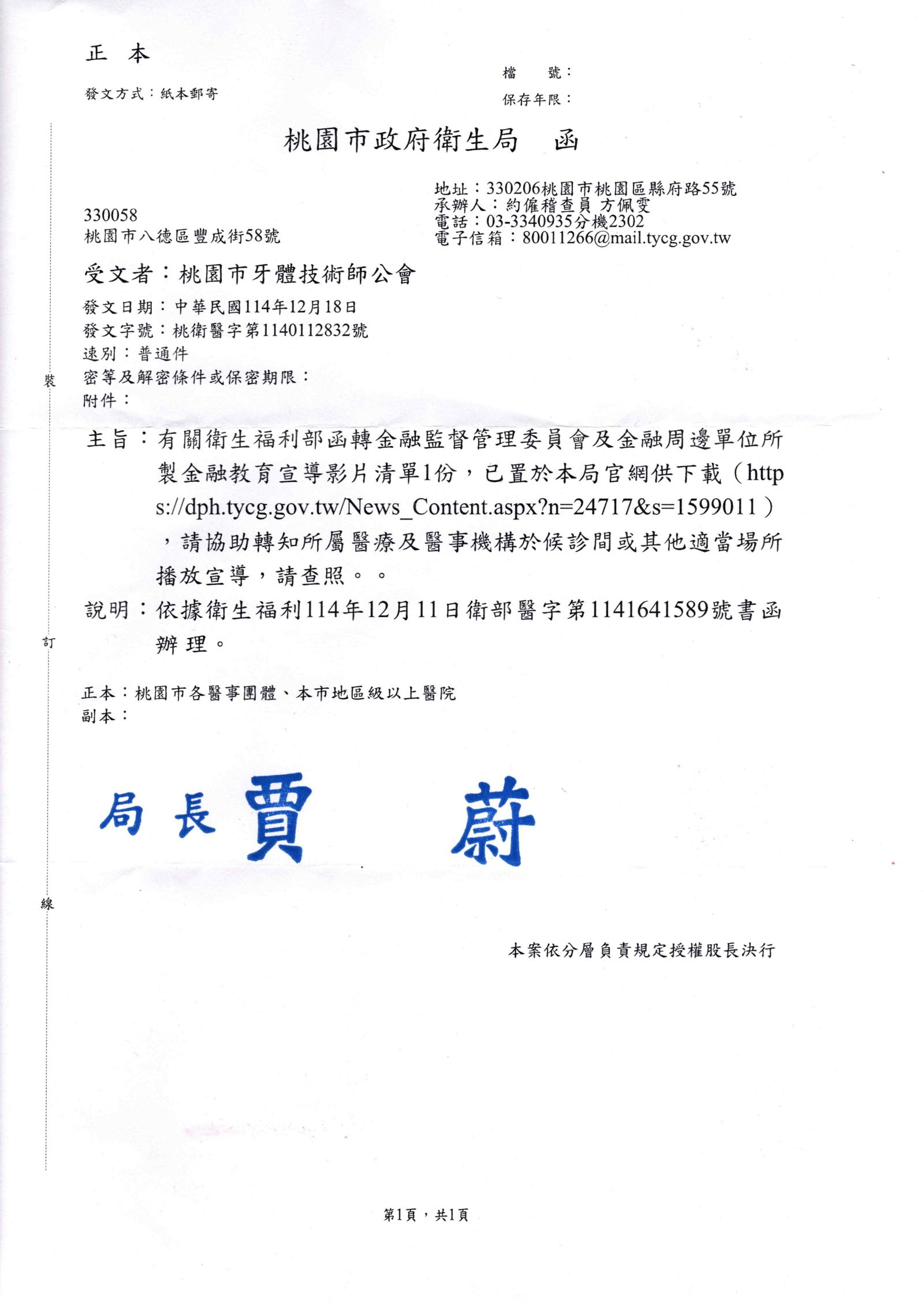 【桃園市政府衛生局轉知】-金融教育宣導