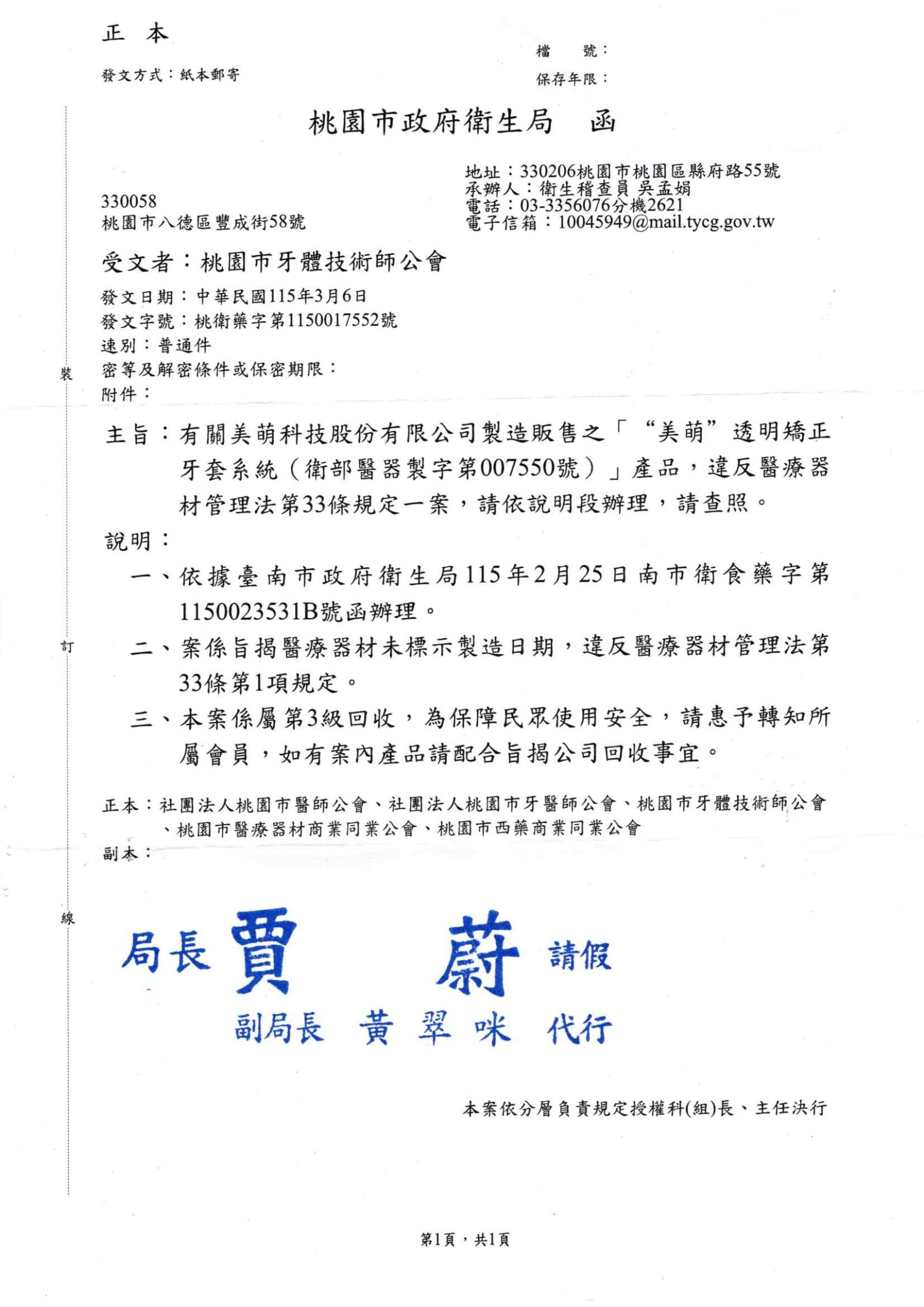 轉知 桃園市政府衛生局 公文