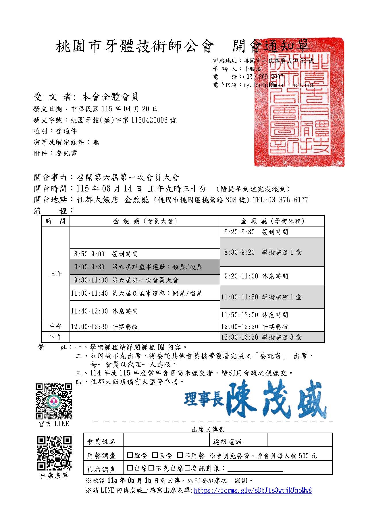 115年6月14日第六屆第一次會員大會暨理監事選舉